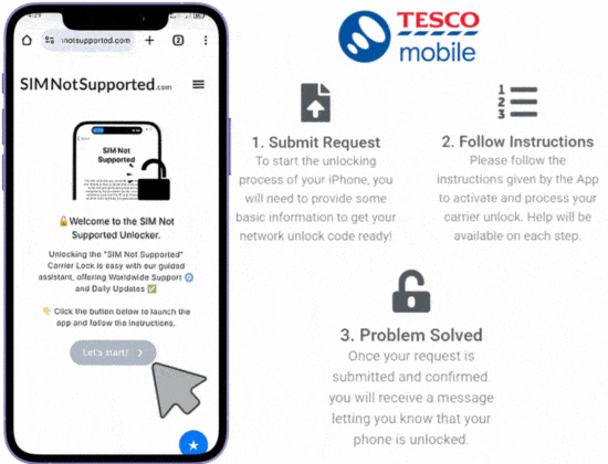 Unlock your Tesco Mobile iPhone with SIMNotSupported’s specialized IMEI service, which removes SIM lock restrictions on all Apple devices! No jailbreak, no Apple ID access, and no Tesco approval required. Just submit your IMEI and enjoy instant compatibility with any local or international carrier. Click on the button below and start your iPhone unlock right now!
